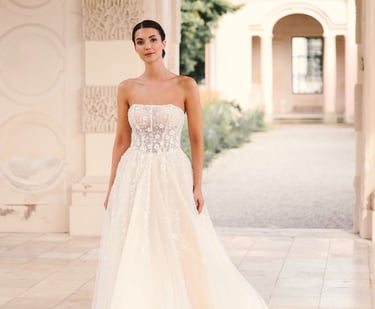 Moderne Brautmode für unvergessliche Momente. Entdecke stilvolle, hochwertige Brautkleider und Accessoires, in verschiedenen Stilrichtungen und Preislagen und finde dein persönliches Traumkleid für einen Auftritt voller Eleganz und Stil.